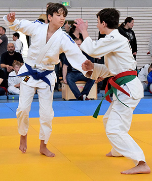 Gegen seinen Nationalmannschaftskollegen Frederik Schreiber vom Judo-Club 71 Düsseldorf war Cavelius dann wieder ebenso souverän wie in den ersten Begegnungen und so musste auch der Düsseldorfer nach drei Passivitäts-Verwarnungen vorzeitig von der Matte.